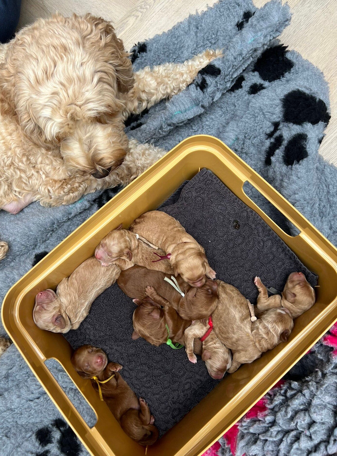 Wij zijn zelf een gezin met 2 honden in huis en dat is voor ons perfect te doen. Tja, en alle pups zijn even leuk en lief maar helaas kun je ze niet allemaal zelf houden als ze geboren worden. Omdat we erg voorstander zijn van in huislijke kring opgroeien gaan we over op het werken met gastgezinnen. De pups groeien dan liefdevol op in uw gezin met alle aandacht voor hem of haar. Doordat de hond af en toe eens bij ons komt logeren raken ze ook gewend aan ons gezin en onze 2 doodles.